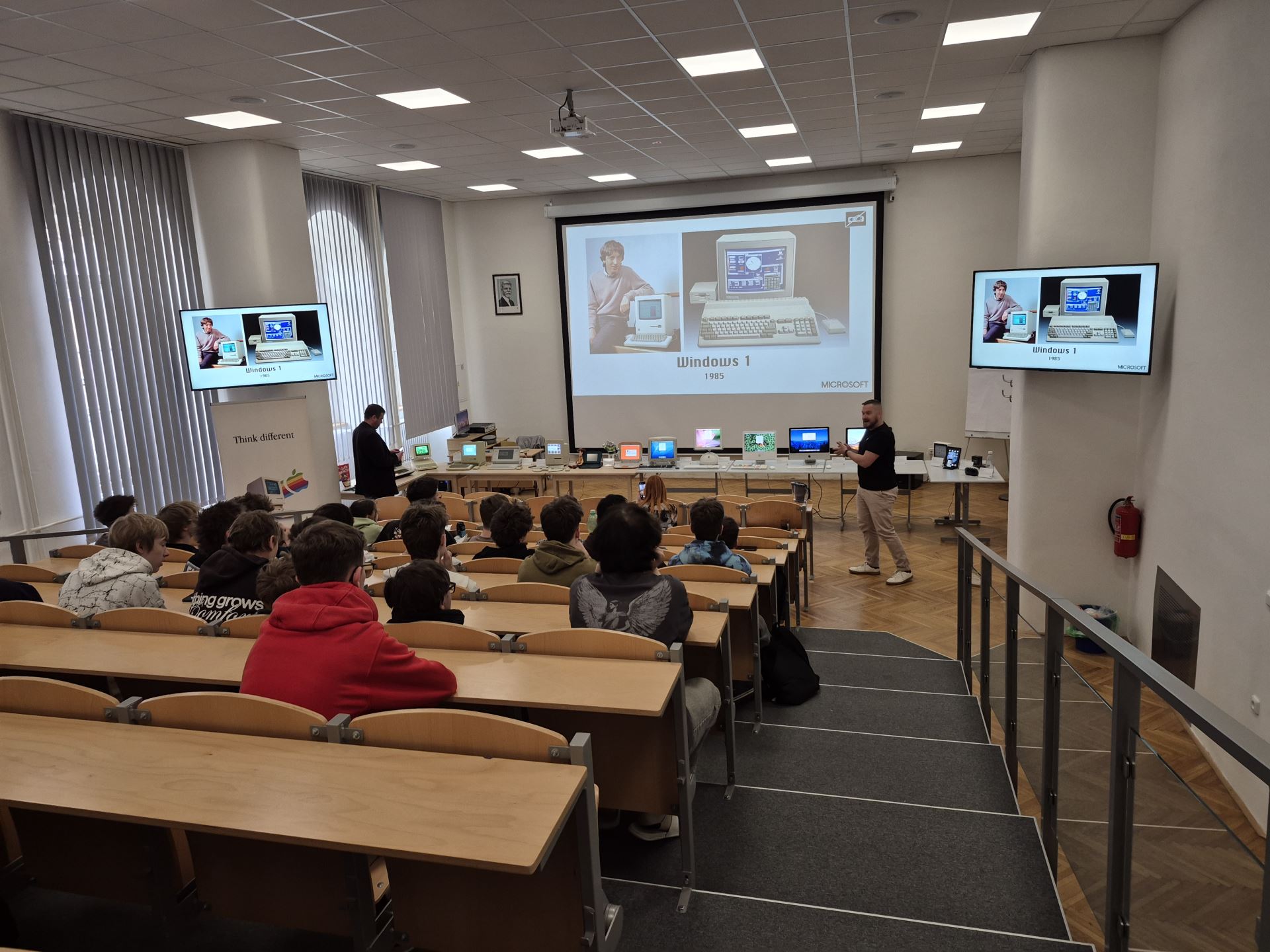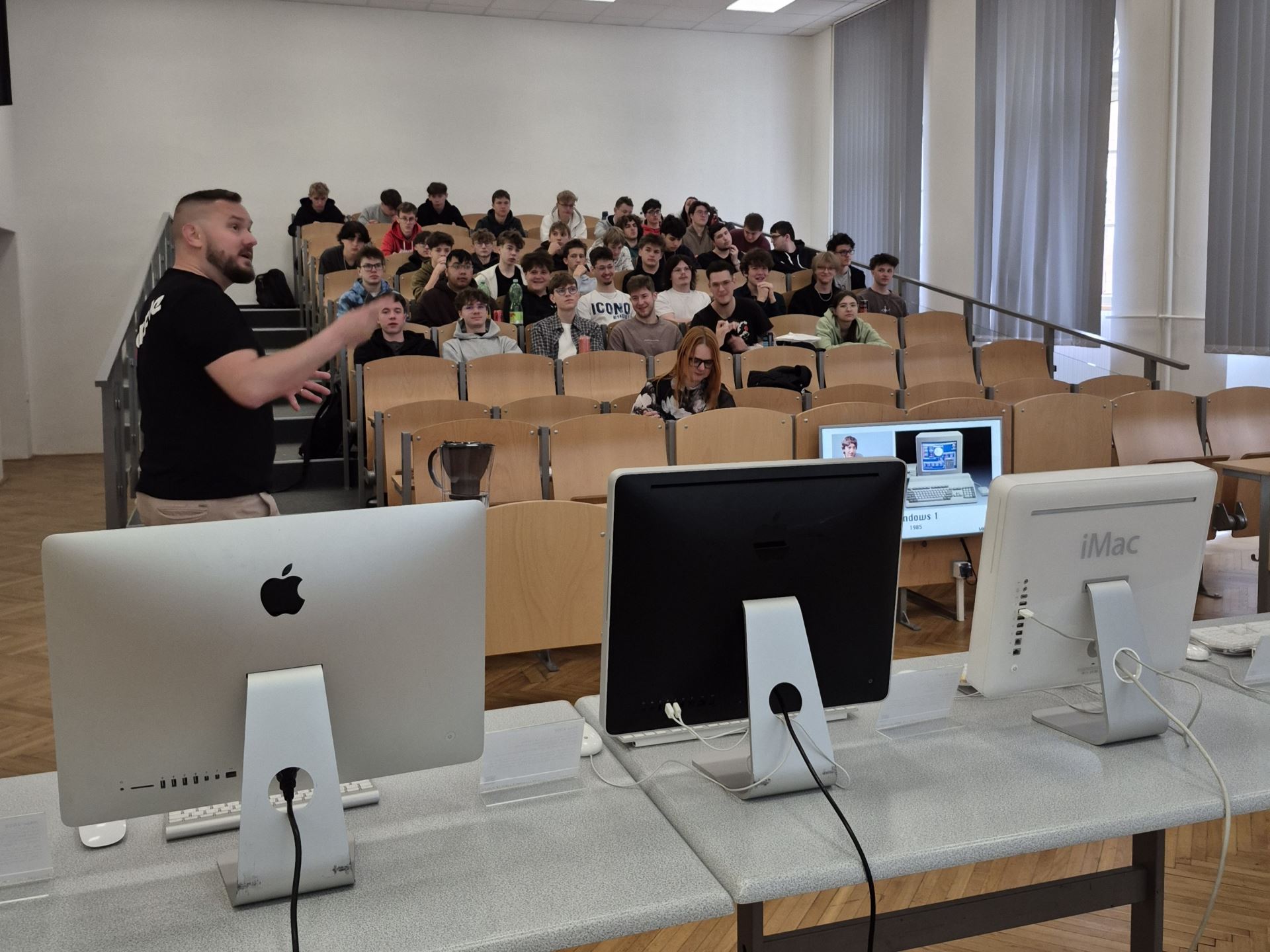 Studenti se doslova přenesli do počátků firmy, kdy Steve Jobs a Steve Wozniak tvořili své první počítače v garáži, a postupně se dostali až k nejmodernějším technologiím současnosti. Velkým zpestřením bylo i osobní vyprávění pana Vity o jeho cestě přímo do Applu v Kalifornii. Celá akce navíc proběhla symbolicky v době 40. výročí založení společnosti Apple.