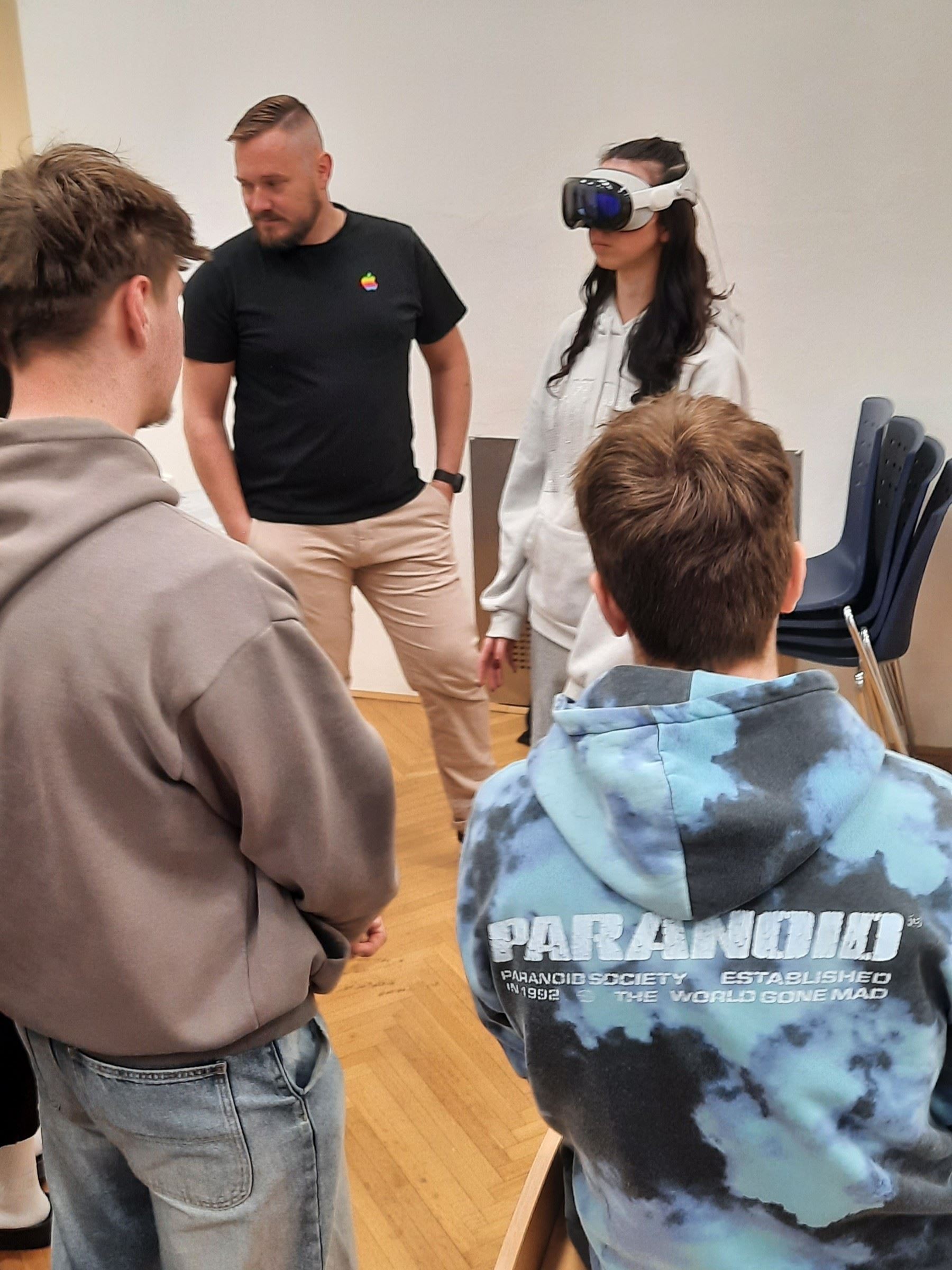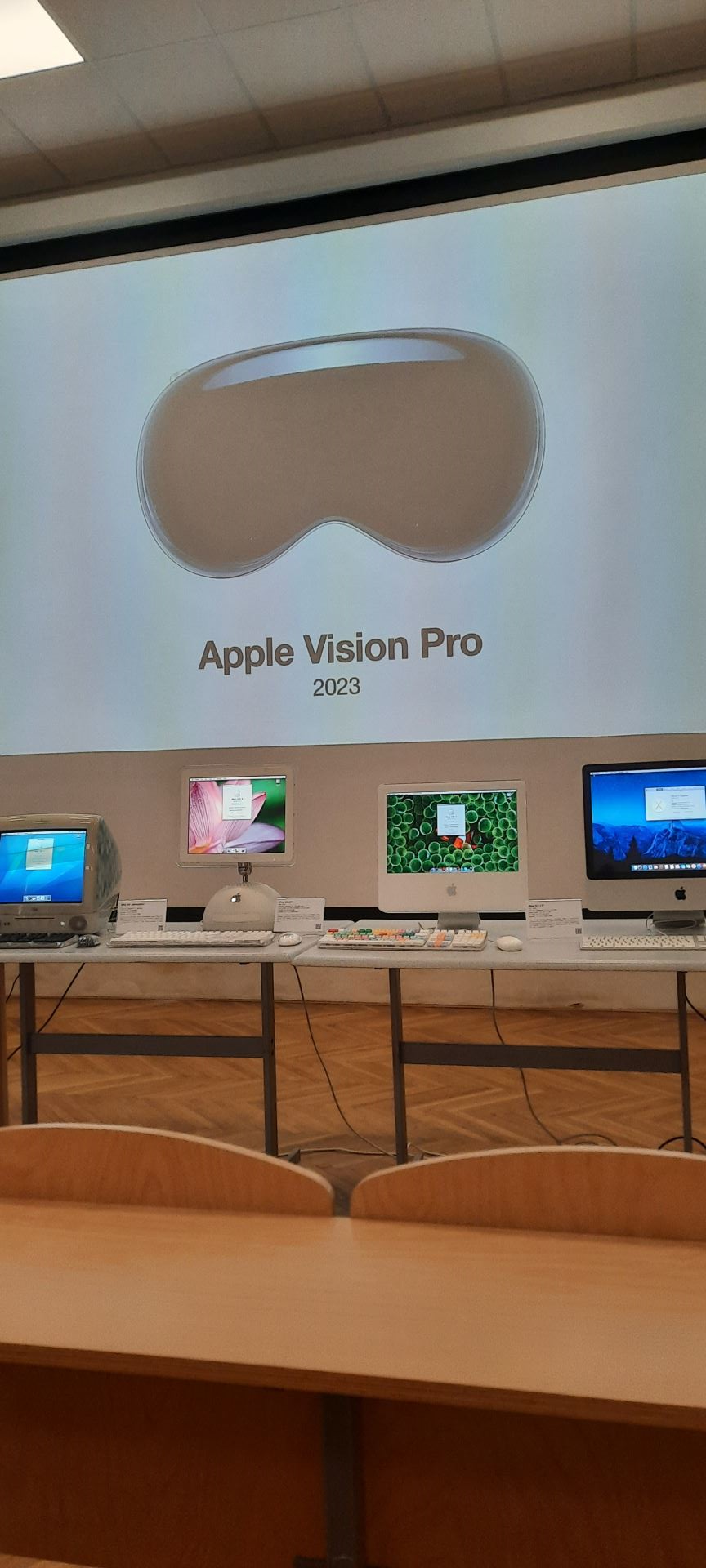 Velkým lákadlem byla také interaktivní výstava funkčních historických počítačů Apple. Studenti si mohli na vlastní oči – a hlavně na vlastní ruce – vyzkoušet legendární zařízení jako repliku Apple I, počítač Apple II, Macintosh počítače nebo iMac modely. Nechyběla ani ukázka revolučních brýlí Apple Vision Pro, které představují budoucnost digitálního světa.