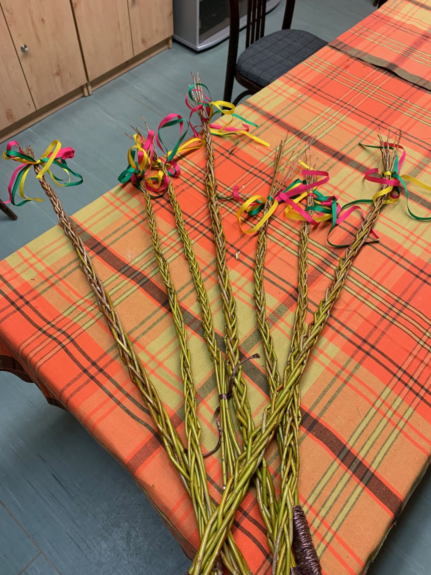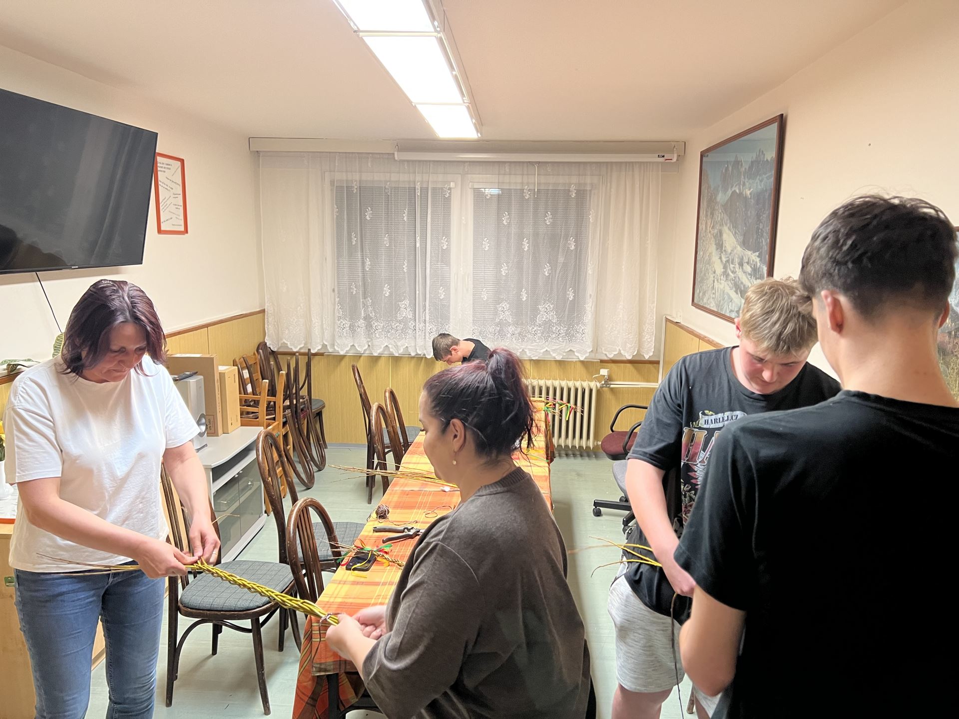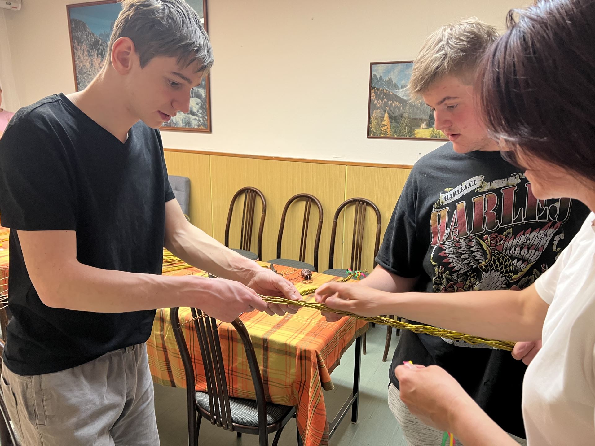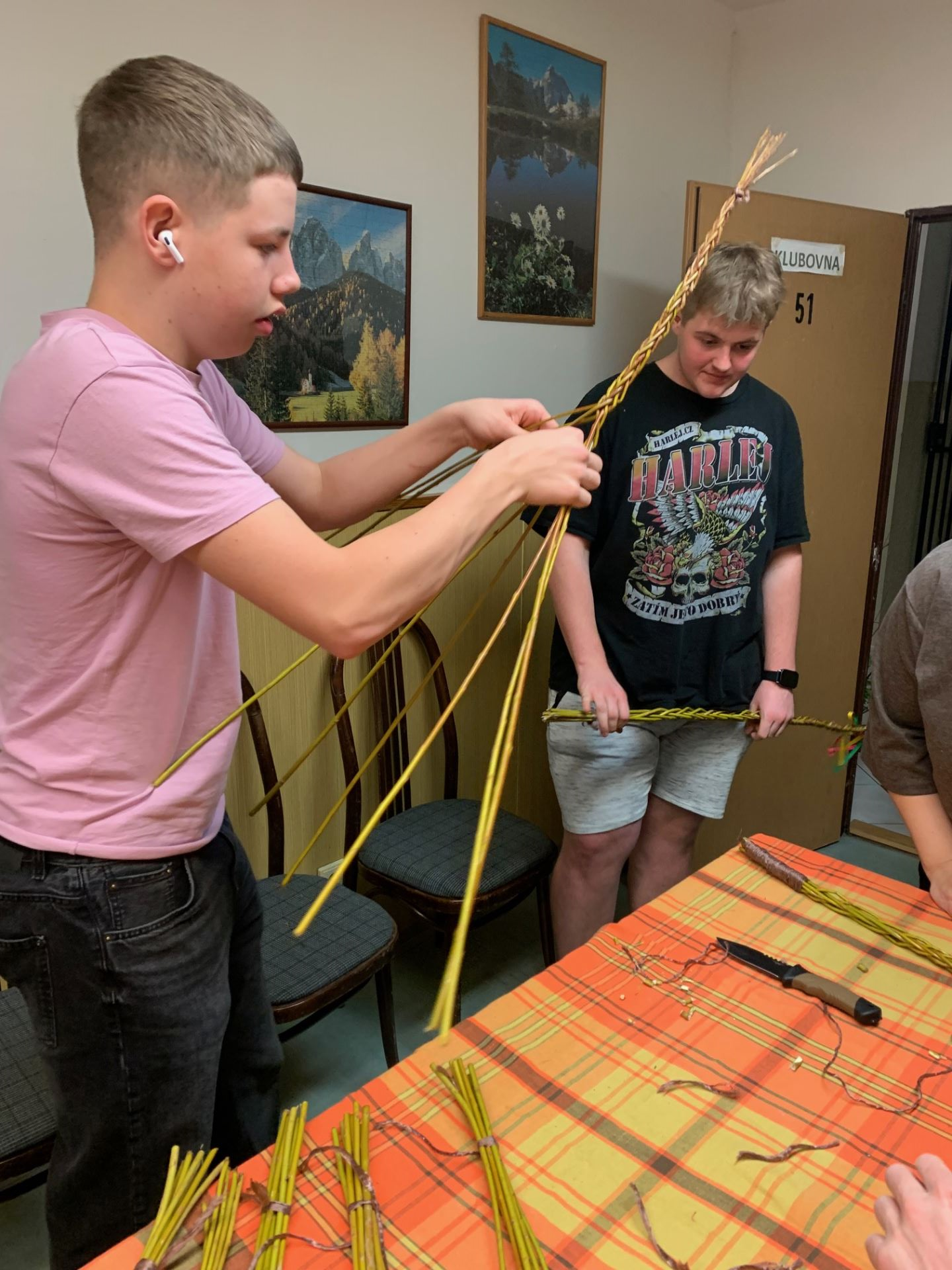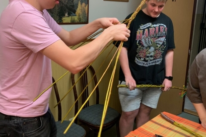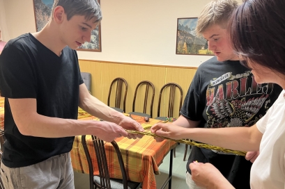 Velikonoční pomlázka 01.04.2026 Chlapci z domova mládeže jsou připraveni vyrazit na Velikonoční pondělí na pomlázku, kterou si vlastnoručně upletli.